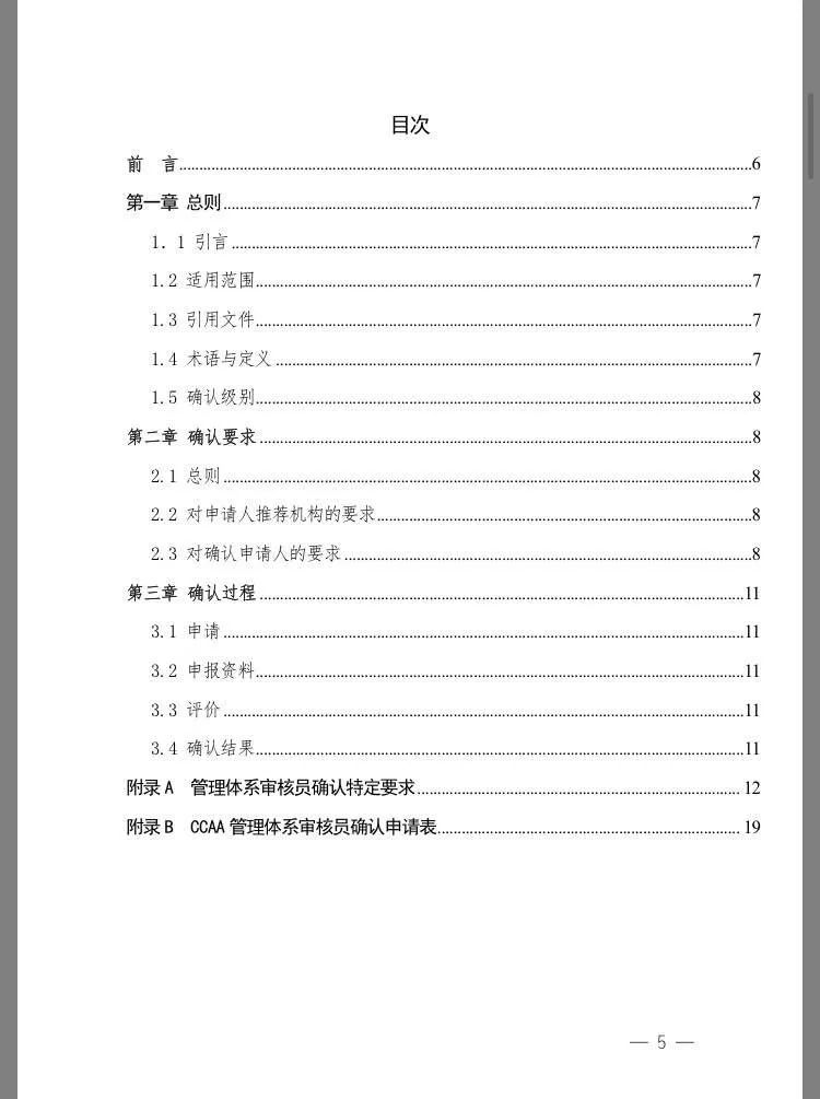 为满足管理体系认证工作需求,中国认证认可协会(CCAA)组 织相关专家对已有的管理体系审核员确认方案进行了分析研究和讨论,将相关管理体系审核员确认方案整合补充为《管理体系审核员确认准则》,现予以发布,自2017 年10月30日起实施。 原《测量管理体系审核员确认方案》、《业务连续性管理体系审核员确认方案》、《道路交通安全管理体系审核员确认方案》、《资产管理体系审核员确认方案》、《乳制品生产企业良好生产规范(GMP)、危害分析与关键控制点(HACCP)体系审核 员确认方案》同时废止。 为保证 CCAA 管理体系审核员确认工作的连续性,现将有关事项通知如下: 一、已取得 CCAA 各领域管理体系审核员确认资格的人员,在确认有效期内,按照原确认方案开展相关认证审核工作;在确认有效期满时,按照本确认准则的要求申请再确认。 二、自 2017 年 10 月 30 日起,对新申请管理体系审核员确认资格的人员,按照本确认准则的要求进行评价。 三、CCAA 将根据管理体系认证工作的发展,及时修订本确认准则,增补相关领域的审核员确认要求。